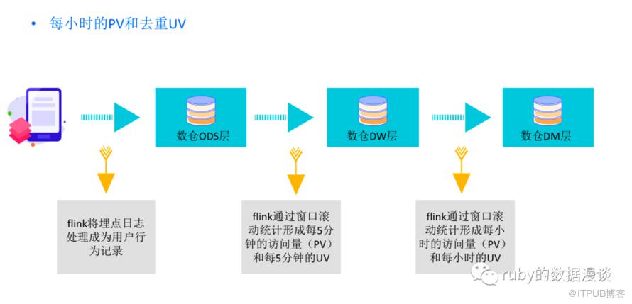 我们常见的电商用户行为的流量统计即为实时统计,如下图所示,整体的统计逻辑: