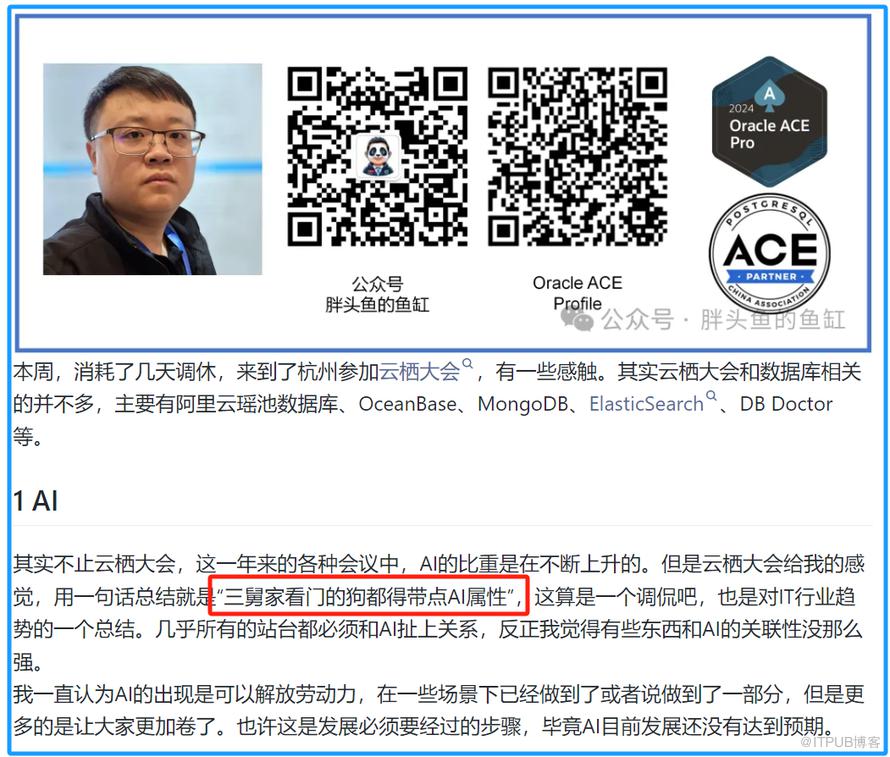 近期,云栖大会在杭州召开,根据几位参加大会的博主的文章,今年 AI 充斥着云栖大会的各个角落,如果你的产品、你的项目、你的话题不能和AI沾点边,你根本不是来参加云栖大会的,你就是来参加“运气大会”的。