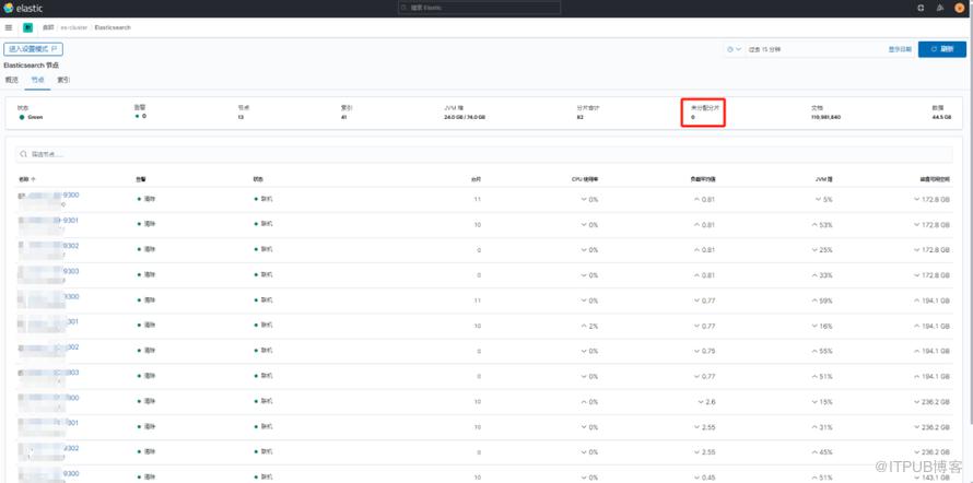 查看 ES 集群,此时未再显示有未分配的分片。