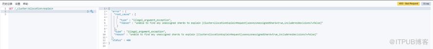 # 执行的命令和返回的错误信息来看,GET /_cluster/allocation/explain 返回了一个 400 Bad Request 错误,并提示无法找到任何未分配的分片,表明分片都已正常分配