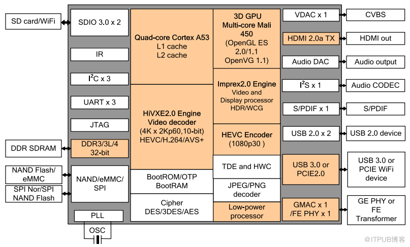 Hi3798MV200是用于IPTV/OTT机顶盒市场的支持4KP60解码的全4K高性能SOC芯片。集成4核64位高性能Cortex A53处理器和多核高性能2D/3D加速引擎;支持H.265 4Kx2K@P60 10bit超高清视频解码,高性能的H.265高清视频编码,HDR视频解码及显示,Dolby和DTS音频处理;内置USB2.0、USB3.0、SDIO3.0、PCIe2.0等丰富外设接口。可支持客户实现全4K业务部署,在图像质量、码流兼容性、视频播放的流畅性以及整机性能方面保持业界最好的用户体验,同时满足不断增长的视频通信、卡拉OK、云游戏、多屏互动等增值业务需求。
