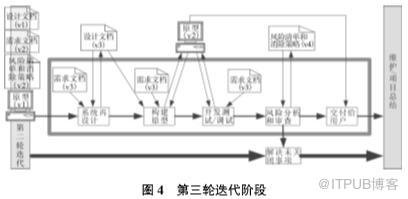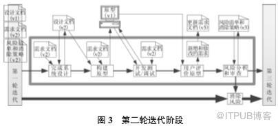 接下来,执行系统的编码、调试以及测试直到满足需求和系统设计。原型完成后,将其展现给用户。用户和开发者一起检查创建的系统,可能发现新的需求,或已有需求需要变更。与之前的迭代一样,新的或修改的需求全部被文档化,附加在原需求文档上。在最后阶段,与上一轮迭代一样,通过会议的形式进行一次项目组内审查/风险审查。该阶段活动如图3所示。