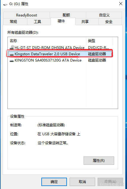 在“属性”面板中打开“硬件”选项,单击选择第二个选项(不要选成其它选项),然后点击下方的“属性”按钮。