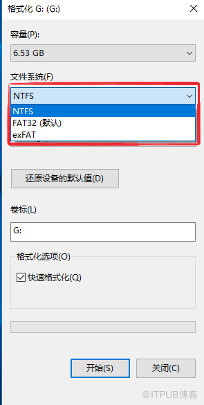 最后回到“我的电脑”,右键单击U盘后,选择“格式化”,在文件系统的下拉菜单中选择“NTFS”格式,然后开始格式化U盘。