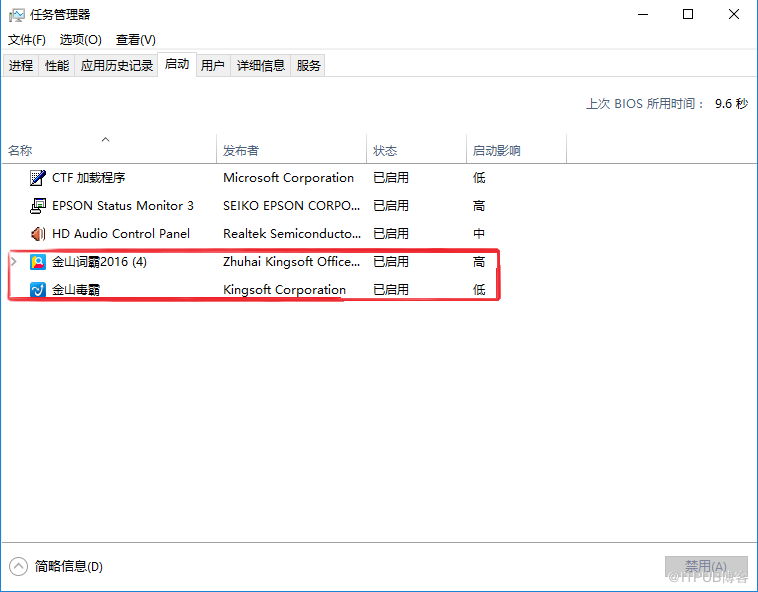在Windows 10中,在任务管理器中的“启动”选项卡下,找到不需要的程序,右击选择“禁用”即可;在Windows