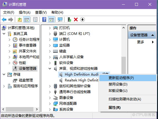 1、右键点击我的电脑,选择“管理”,在打开的面板中选择点击左侧栏的“设备管理器”,就可以在右侧栏中找到“声音、视频和游戏控制器”。