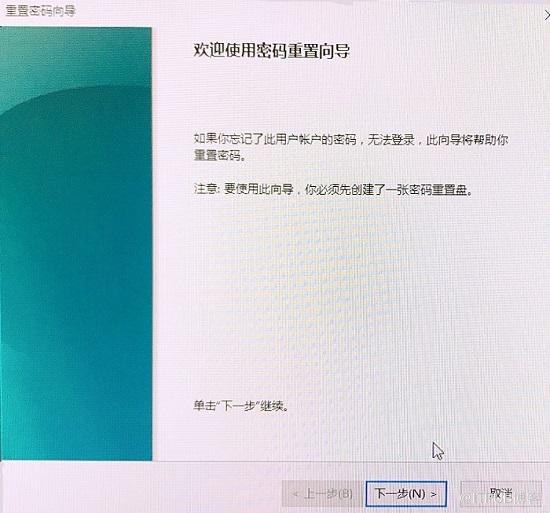 3、创建完成后,我们来试试效果。锁屏后,当我们输错密码或者直接按下Enter键时,密码框下方就会出现“重置密码”的选项,点击后就会出现密码重置的引导,然后就可以进行用户帐户密码的重置设置了。