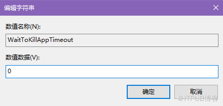 4、双击WaitToKillAppTimeout项,将其数值数据设置为0,然后点击确定退出。重启电脑。