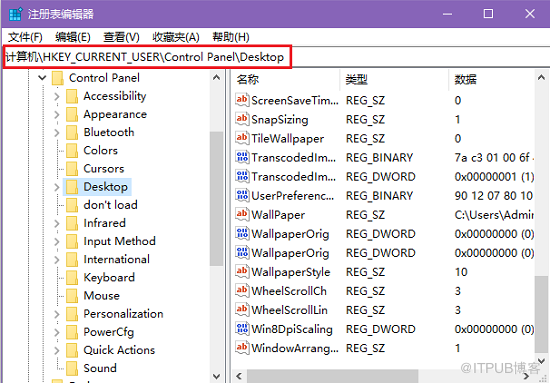 2、在注册表编辑器中依次点击打开HKEY_CURRENT_USER\Control Panel\Desktop。