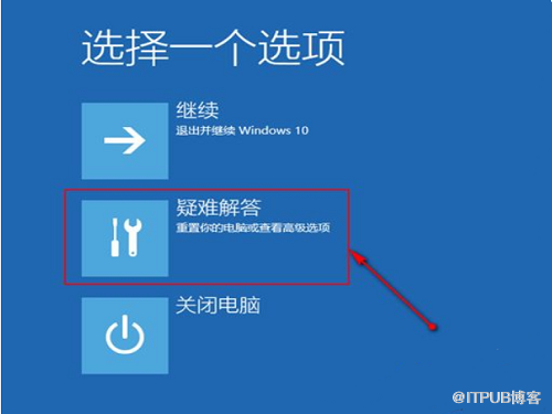2、点击“立即重新启动”后,电脑会退出系统进入到“选择一个选项”的界面,然后我们选择点击“疑难解答”。