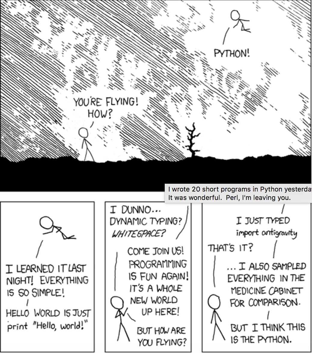 “我还对药品柜中的所有东西进行了采样比较”(暗指他对比过多种编程语言,但还是觉得 Python 最简单)