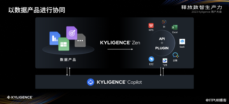 Kyligence Copilot 以 AI 加强协同,将释放组织、甚至组织和组织之间的潜力。数据产品是过去几年流行起来的一个新概念,通过数据产品,将各种各样的数据应用有机地组合起来,能够在组织内部更好地把数据用起来。大家可以通过 Kyligence Copilot 去对接不同的数据产品,整合不同的第三方软件和系统,以数据产品的形式加强组织间的协同。