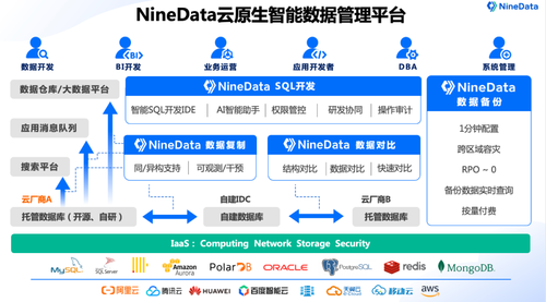 NineData是新一代的云原生智能数据管理平台,包含了数据复制、SQL开发、数据备份以及数据对比等多种功能。NineData采用领先的云原生与AIGC技术,为云与AI时代的架构设计提供了智能数据管理平台。作为业界首个支持跨云和本地IDC无缝打通的平台,能够帮助客户轻松完成数据上云、跨云数据实时传输、ETL、数据备份、企业级智能SQL开发、数据库研发规范、生产变更以及敏感数据管理等功能,从而让客户的数据使用更加安全高效。