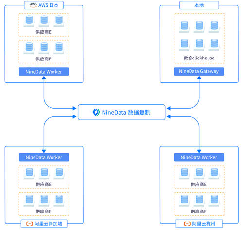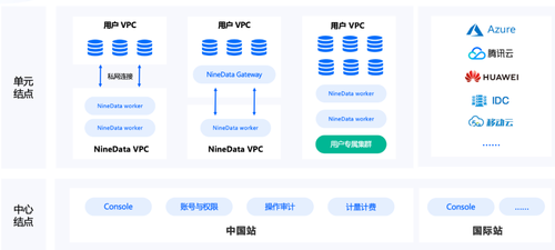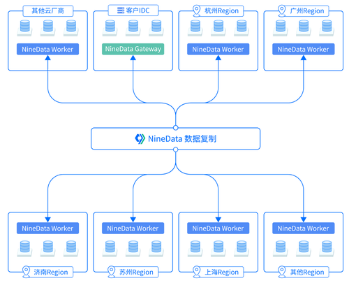 某大型国资云数据复制,客户全国有30+Region,本身有很多数据需要同步,同时还要提供数据复制产品给他的客户使用,比如该云的客户从其他云厂商或自建系统中迁移上云。包括很多复杂的应用场景,如迁移上云、跨云迁移、跨区域迁移、数据容灾、异地多活等业务场景。也面临非常复杂的网络环境,Region内部/Region之间,和其他云厂商与客户自有系统之间等各种链路。客户在考察了市面上主流云厂商、数据复制专门厂商的方案后选择了NineData。