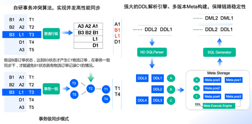 因此,我们开发了一种DDL解析能力,即在DDL解析完成后,直接在同步线程解析线程中进行重放。同时,我们记录每个变更的版本,重放的同时生成新版本,旧版本不删除。这样,任何表在任何时刻都可以随时查到其Meta结构,而不需要像其他业界实践一样,需要从头开始重新回放一遍。