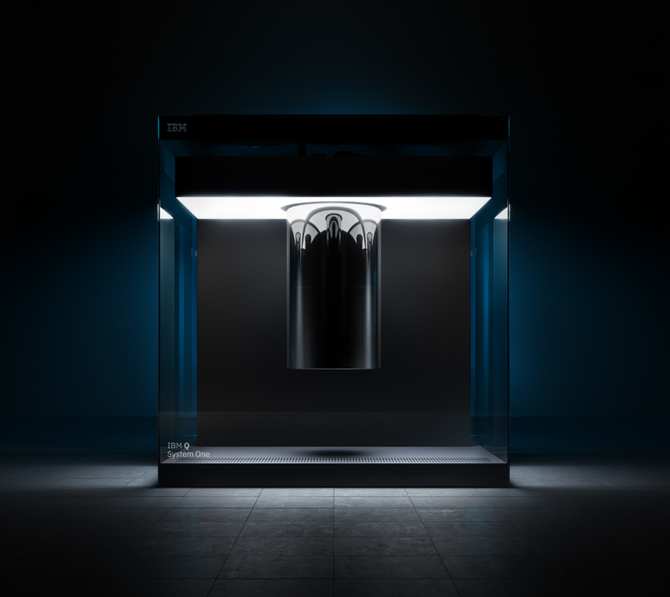 IBM Q System One封装在一个9英尺(约2.7米)高、9英尺宽、半英寸(约1.3厘米)厚的硼硅酸盐玻璃外壳中,这是一个封闭的气密外壳,可以通过“旋转平移”轻松打开,能够简化系统的维护和升级过程,同时最大限度地减少停机时间,这也是 IBM Q 适用于可靠商业用途的一个创新。