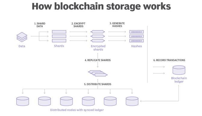 由于其分布式特性,区块链技术被评价为“天然适合P2P,去中心化存储”。在这个场景(数据存储)中,区块链提供了创建一个地理上分散的存储资源的逻辑存储池所需的结构,其中,这些存储池可充当区块链节点。