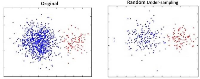与过采样不同,这种技术通过减少类的数量来处理一个不平衡的数据集。分类问题有多种方法,如聚类中心和Tomek links。聚类中心方法用K-means算法的聚类中心代替样本的聚类;Tomek link方法去除类之间不需要的重叠,直到所有最小距离的最近邻都属于同一个类。