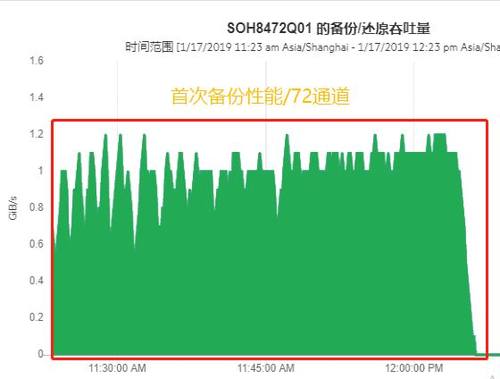 1)首次备份26TB Oracle数据库数据,用时7小时,平均速度1GB/s,极限速度1.2GB/s;