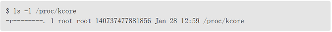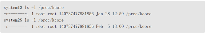 有趣的是,下面查询的两个系统没有安装相同数量的内存,但是/proc/kcore的大小在这两个系统上是相同的。第一个系统安装了4 GB内存,第二个有6 GB。