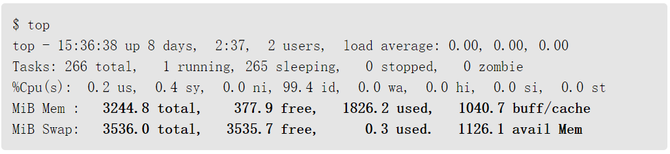 另一个输出非常容易理解的命令是top,top输出前5行中的数字显示了内存的使用情况。