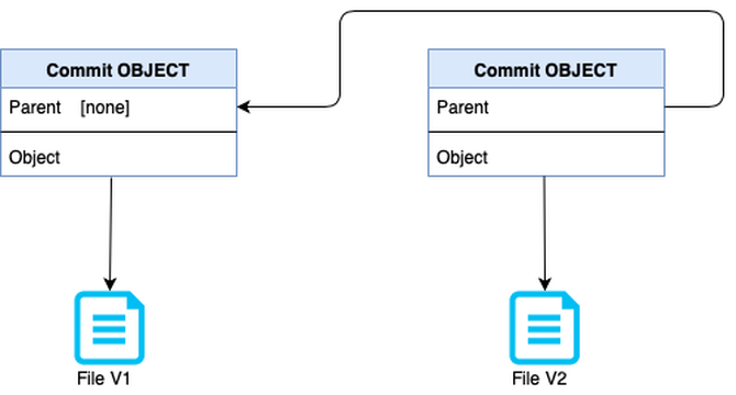 IPFS作为一种不可变的存储方式工作,一旦某个东西被添加到网络中,它就不能被更改,因为更改文件将更改哈希。那么我们如何更新文件呢?为此,IPFS使用了版本控制系统,该系统特别是在开源社区中被广泛使用,被称为Git。IPFS具有“提交对象”,这有助于跟踪文件创建以来的所有版本。每当我们在IPFS网络上添加一个文件时,都会为该文件创建一个提交对象,当我们更新该文件时,会创建一个新的提交对象,该对象指向该文件的旧提交对象,如下图所示: