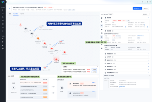 1个平台XDR:通过网端一手数据采集,结合网端聚合分析引擎,实现攻击链深度溯源,检测能力更全面,事件响应更精准。