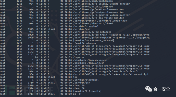 pe -ef查看运行进程,发现tmp下存在可疑文件。