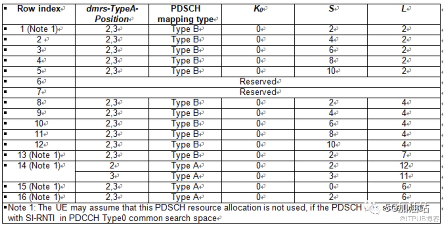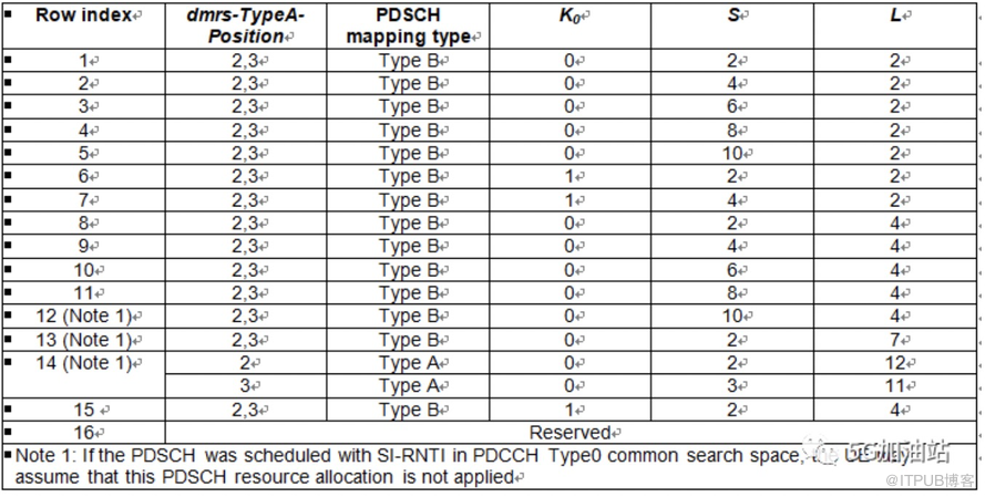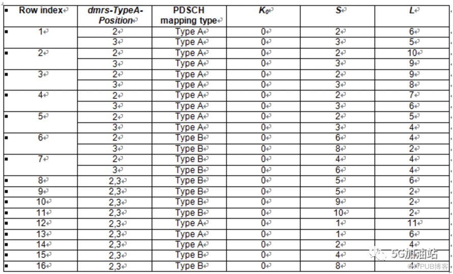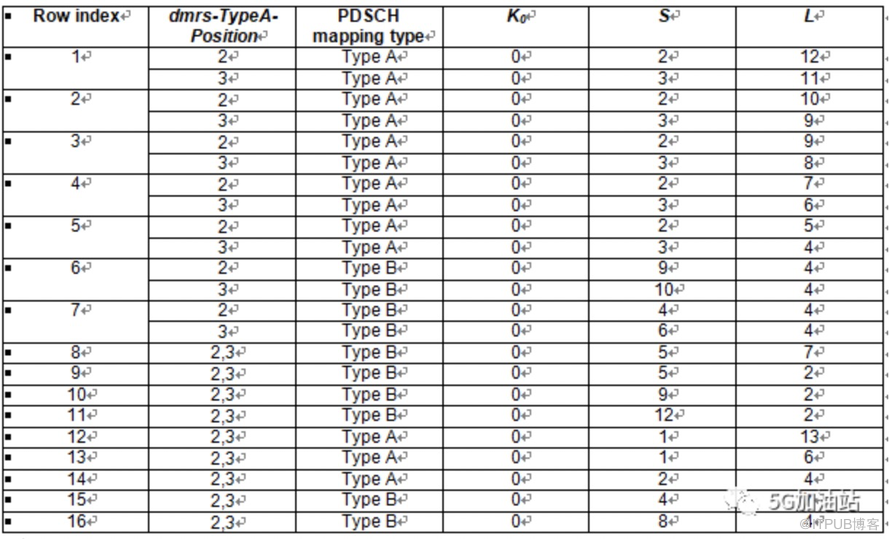 表2 Default PDSCH time domain resource allocation A for normal CP(38.214 Table 5.1.2.1.1-2)