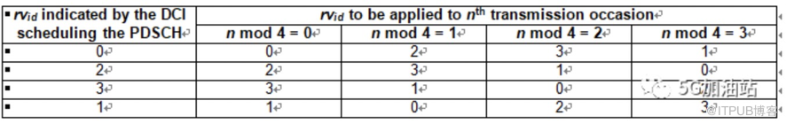 表7 Applied redundancy version when pdsch-AggregationFactor is present(38.214 Table 5.1.2.1-2)