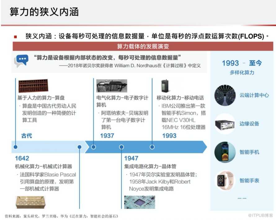 什么叫“算力”?算力就是计算能力,无论是你口算心算拿算盘算用计算器算,还是计算机服务器芯片的高速运算,本质上都是对数据进行的加减乘除的运算处理,而信息时代的根基就是计算,不管是使用手机发送微信、刷微博、订外卖的生活场景,还是研究机构里使用超级计算机分析基因研究宇宙射线的科研场景,亦或是企业使用数据中心进行大数据处理的政企应用场景,落到芯片中,其实都是数字比特信息的运算处理。