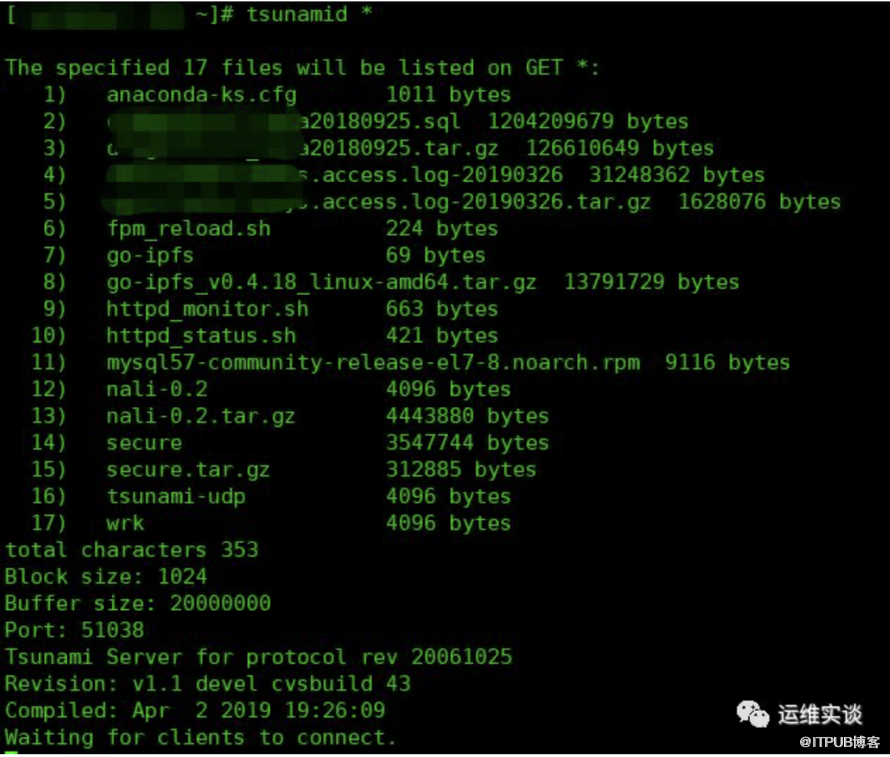 tsunami分为客户端和服务端,在服务器端,直接运行tsunamid 指定文件名,或者用”*”表示所有文件,启动服务即可,客户端即可下载指定的文件或该目录下的任意文件。