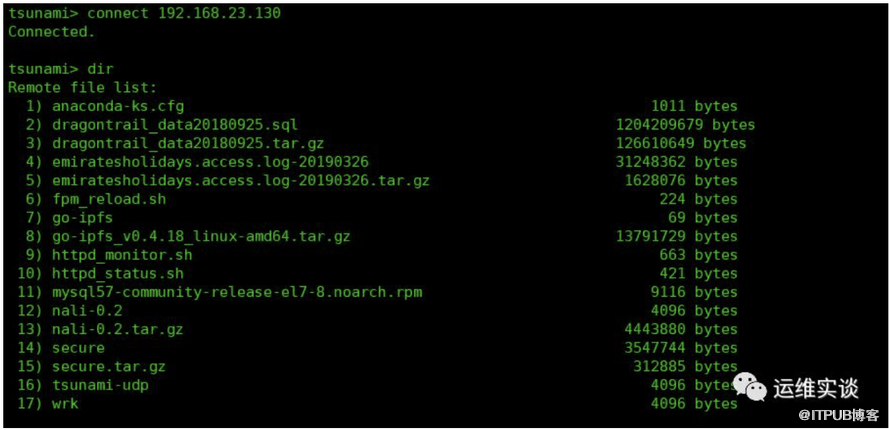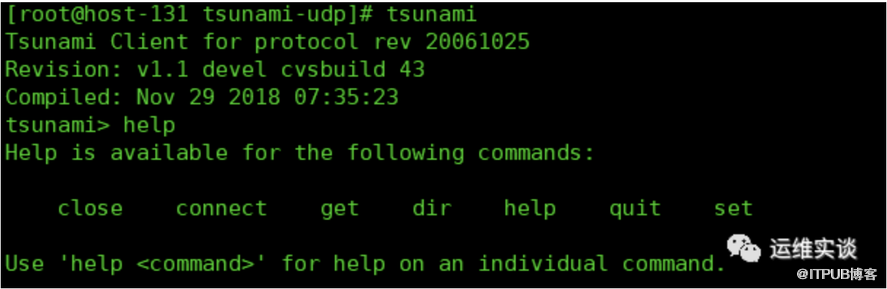 客户端很简单,直接执行tsunami,进入交互,通过connect 服务端,链接服务端之后,就可以进行操作。