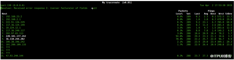 怎么看mtr,通常我们通过mtr看两个问题,丢包和延迟