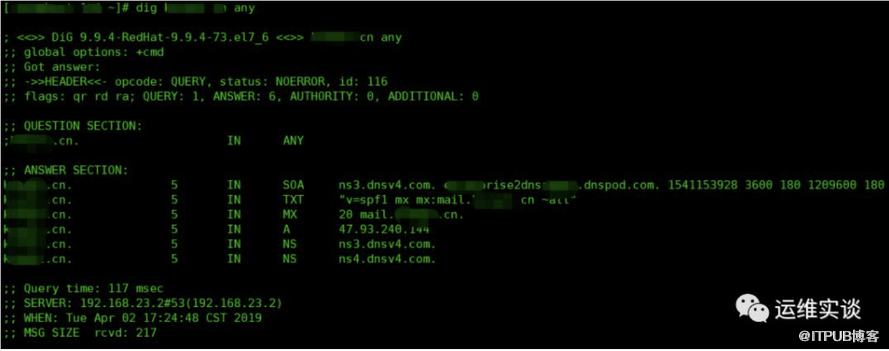 不使用选型的dig命令,只返回一个记录,如果要返回全部的记录,只需要添加选项: