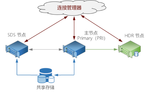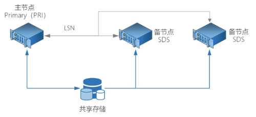 SinoDB的共享存储集群称为 SDS,由一个主节点(PRI)和一个或多个备节点(SDS)组成。SinoDB SDS集群基于共享存储技术,主节点实际完成集群中所有的写操作,生成的数据和事务日志都存储在共享存储设备(通常是SAN存储)上,备节点读取存储在共享存储设备上的事务日志并在内存中回放,实现集群中所有节点内存中数据状态的一致性。