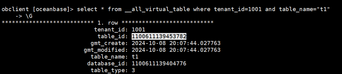 (1)创建一张表,此表的table_id是1100611139453782