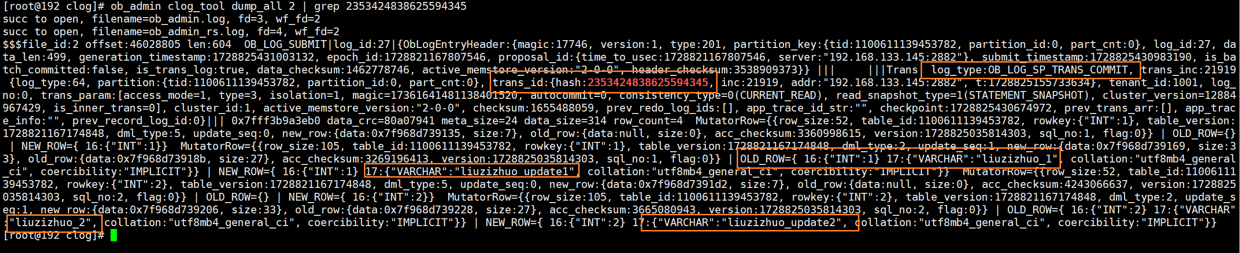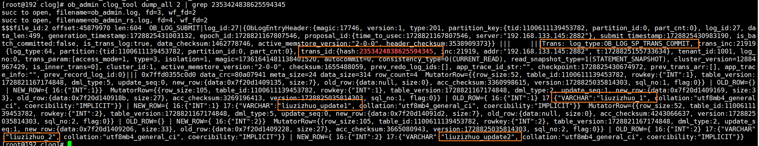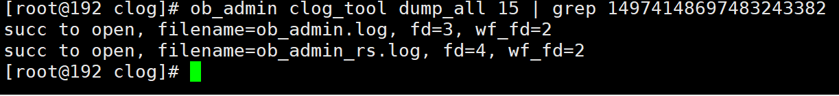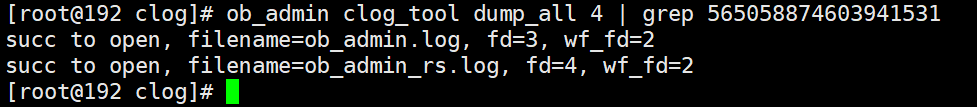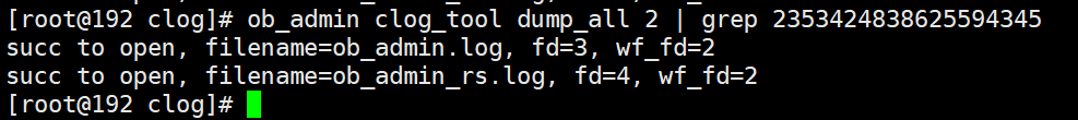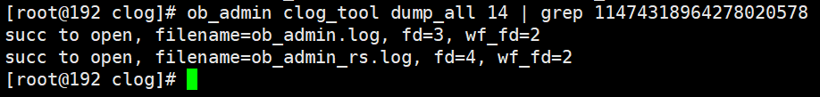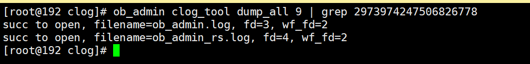 (5)执行commit将此事务提交,commit响应后再次通过ob_admin工具解析Clog文件。