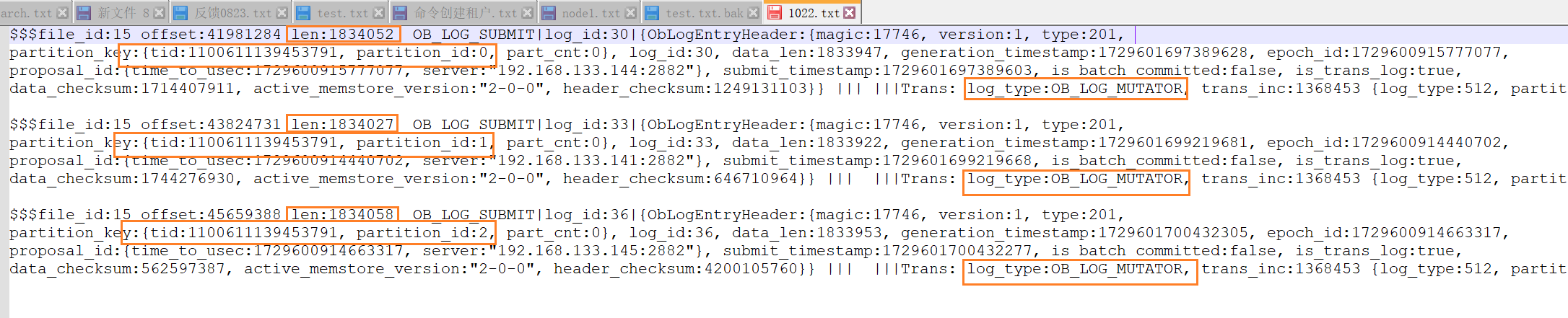 (8)日志很多拿了出来放在txt。单个节点的Clog日志一共是3条mutator日志,1条是本地产生的Clog,另外2条是其他分区leader传过来的,符合预期。