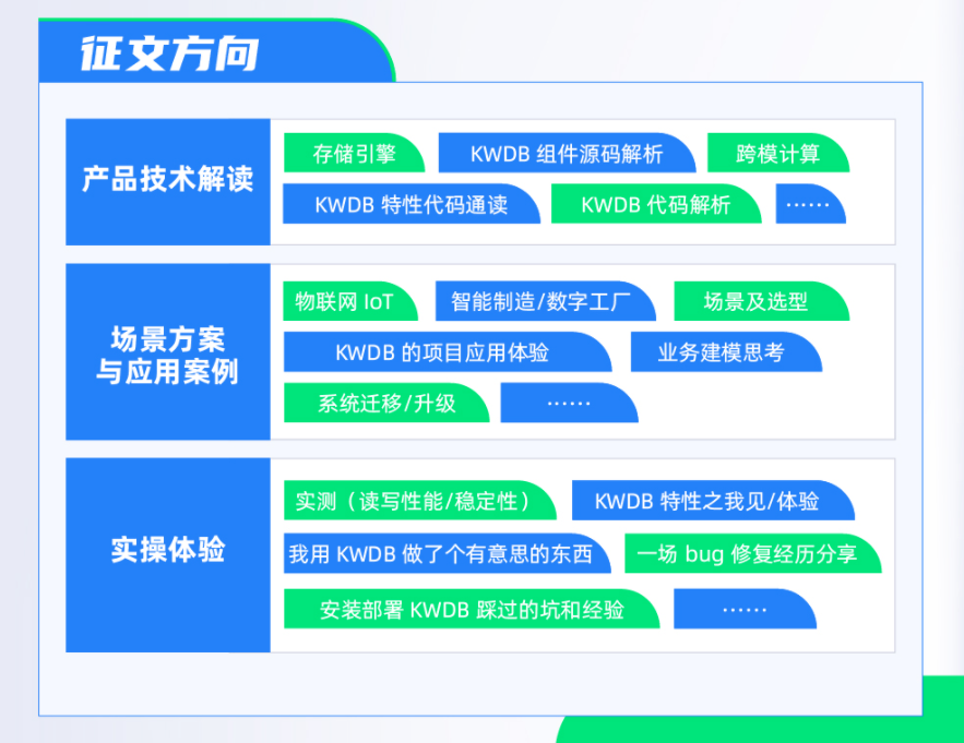投稿方向:KWDB使用体验,源码解读,业务建模思考,应用实践等干活内容;