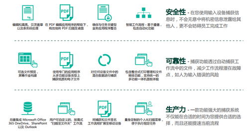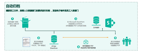 而第三步,就是如何使用。捕获和处理后的文件,需要合适的归档及分发,所以相应的解决方案也是非常丰富,而实现信息的快速分享,也拥有多种方式,包括电子邮件、扫描至指定文件夹、SharePoint以及文件管理系统及云端存储等等。这些也加快了整个数字化信息的分享,优化了整个数字化的办公流程。