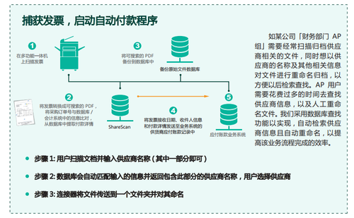 上面我们提到了扫描件的多目标分享,特别是采购与财务部门,可以减少很多不必要的重复劳动,提高办公效率。那么作为进阶方案,eCopy ShareScan还可以为指定文件,建立可以查询并自动匹配的数据库,这样用户在收到指定文件后,就会自动启动下一段工作,全面优化办公流程。
