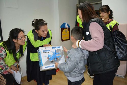 上海站现场特殊儿童将自己的手工作品送给自己最爱的人