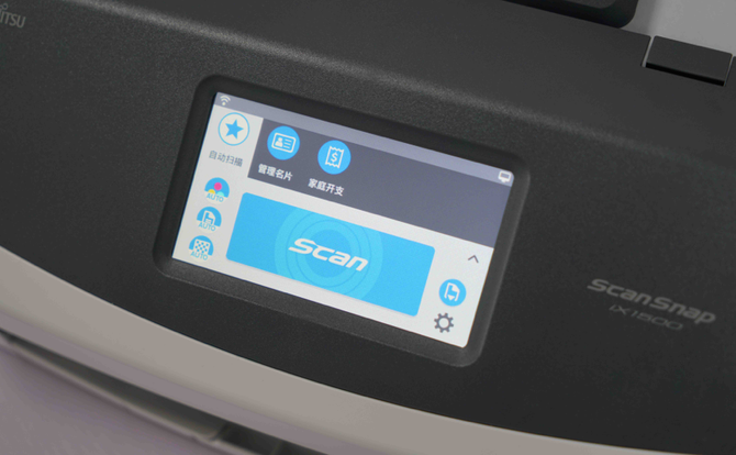 这台富士通ScanSnap iX1500的交互和操作功能全靠这块4.3英寸TFT触摸大屏来完成,使用上也没什么过高的门槛,基本都可以顺畅自如的进行使用,方法也极其简便。