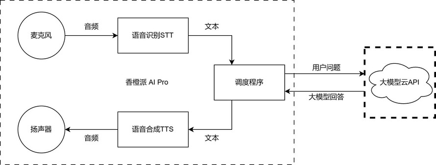 使用香橙派AI Pro开发板,实现语音对话功能。实现一个AI智能助手,可以与我们进行语音对话,知识问答,作为一个基于大模型的语音助手,一方面可以为我们提供更多的知识,也是一个娱乐的玩具。