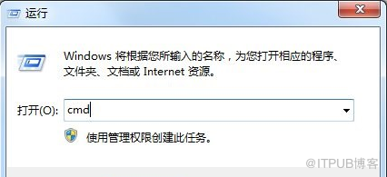 1、 点击开始菜单,找到运行后点开,输入 cmd命令,回车;