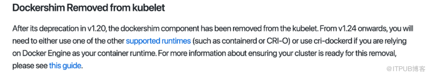 事实上,仔细阅读Kubernetes官方的1.24版的Change Log,你会发现,其对于Docker支持的表述与一年前的1.20版有微妙的不同。