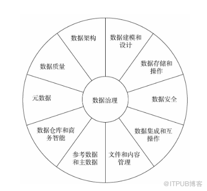 记得当年第一次看到DAMA如下这张数据管理框架图时,我想当然得认为数据治理与周边的10个数据管理职能是等同关系,这种错误的认知决定了我在日常工作中不太可能有什么真正的数据治理思想,即我根本不会想到要从源头的组织、机制和流程上去解决问题,这完全超出了我的认知边界。