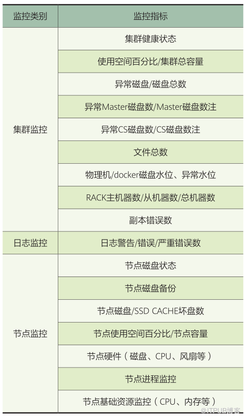 3) 服务水平数据监控:反映存储服务的稳定性以及用户的使用健康状态信息。例如服务可用性、内部错误数、返回错误情况、日志告警等。