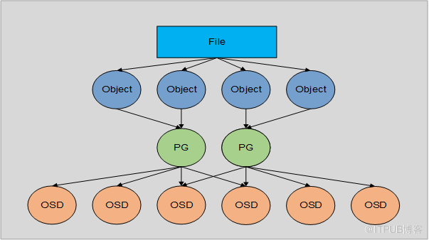 (1)文件(FILE):用户需要存储或者访问的文件。对于一个基于Ceph开发的对象存储应用而言,这个文件也就对应于应用中的“对象”,也就是用户直接操作的“对象”。